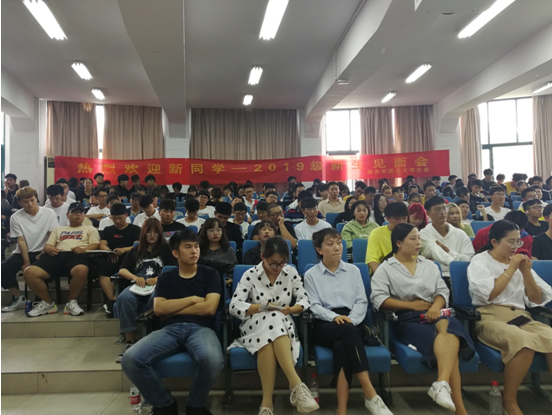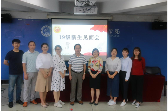 2019年10月11日上午,商务系在1117阶梯教室举办了2019级新生见面会。2019级12个班级近700名新生参加会议。会议由商务系学工办副主任、学生党支部副书记、团总支书记贺潇主持,商务系主任李庆海、党总支书记过芹芹到会讲话,教研室主任、教学秘书和全体辅导员及班助出席会议。