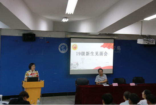 党总支书记、学生党支部书记过芹芹老师首先对2019级新生表示欢迎,她希望同学们的大学生活是充实的,也是无悔的,同时,对新生们提出了3方面的要求:一是积极追求进步,珍惜大学生的身份,言行举止必须与身份相符合;二是明确学习任务,认真学习专业知识,不断提高个人综合素养;三是心怀感恩和敬畏,感恩父母、师长,对校规校纪和法律法规始终心存敬畏。