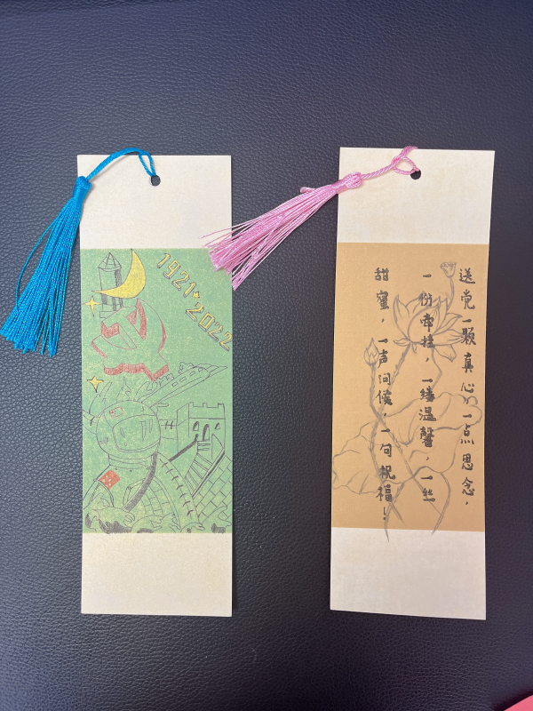本次活动,共收到了近百个创意书签作品,同学们紧紧围绕活动主题,充分发挥创作才能,将自身对主题的理解及对学习生活的感悟融入到创作当中。参赛作品中有的礼赞新时代,抒发对祖国的热爱;有的表达了听党话、跟党走,立志做有理想、敢担当、能吃苦、肯奋斗的新时代好青年的决心;有的寄语青春,怀抱梦想又脚踏实地……
