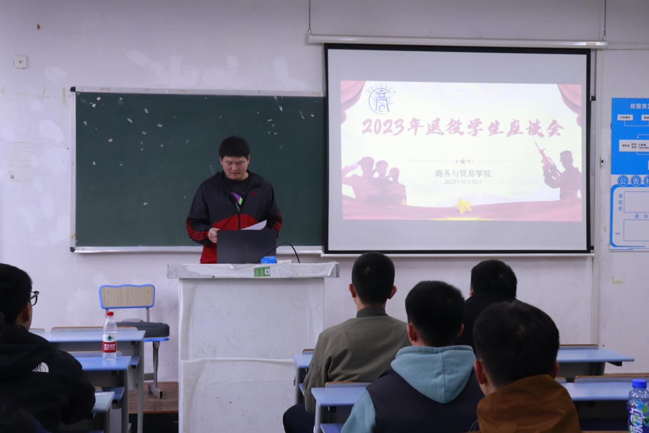 为进一步做好退役复学大学生教育管理工作,为他们创造良好的学习、生活、成长环境,加强在校退役士兵大学生思想政治引领,发挥退伍大学生的先锋模范作用,商务与贸易学院于近日在第一教学楼1114室召开了退役士兵学生座谈会。40位2022级、2023级退役士兵大学生参加了座谈会,会议由学院党总支副书记高计龙主持,党总支书记过芹芹出席本次座谈会并讲话。