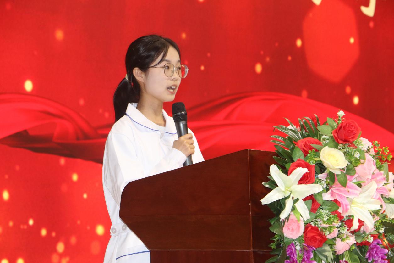 2024届学生代表应雨鸥向大家分享了她的实习经历,她提到临床实习和在校学习有很大的区别,在实习过程中经历了许多的“第一次”,鼓励大家在校期间勤奋好学,打好基本功,在未来勇于尝试、甘于奉献,承担起护理人的责任和使命。